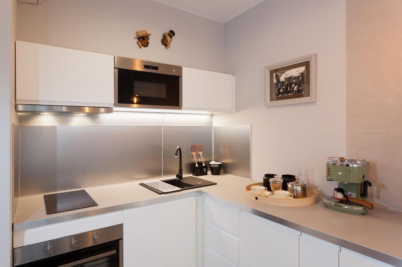 Apartament. Featuring a private entrance, this apartment comprises 1 living room, 1 separate bedroom and 1 bathroom with a walk-in shower and a hairdryer. In the well-fitted kitchen, guests will find a stovetop, a refrigerator, a dishwasher and kitchenware. This apartment features soundproof walls, flat-screen TV with streaming services, city views, as well as winechampagne for guests. The unit offers 2 beds. Apartament - 5 osobowy. Powierzchnia pokoju ok.: 40 mkw.