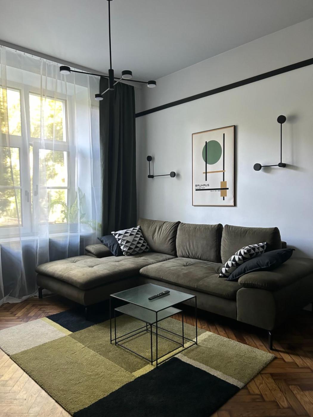 Apartament z 1 sypialnią. This apartment is comprised of 1 living room, 1 separate bedroom and 1 bathroom with a shower and a hairdryer. Meals can be prepared in the well-fitted kitchen, which is fitted with a stovetop, a refrigerator, kitchenware and an oven. The apartment features parquet floors, a seating area with a flat-screen TV, a washing machine, a dining area as well as ancourtyard view. The unit offers 2 beds. Apartament - 2 osobowy. Powierzchnia pokoju ok.: 35 mkw.